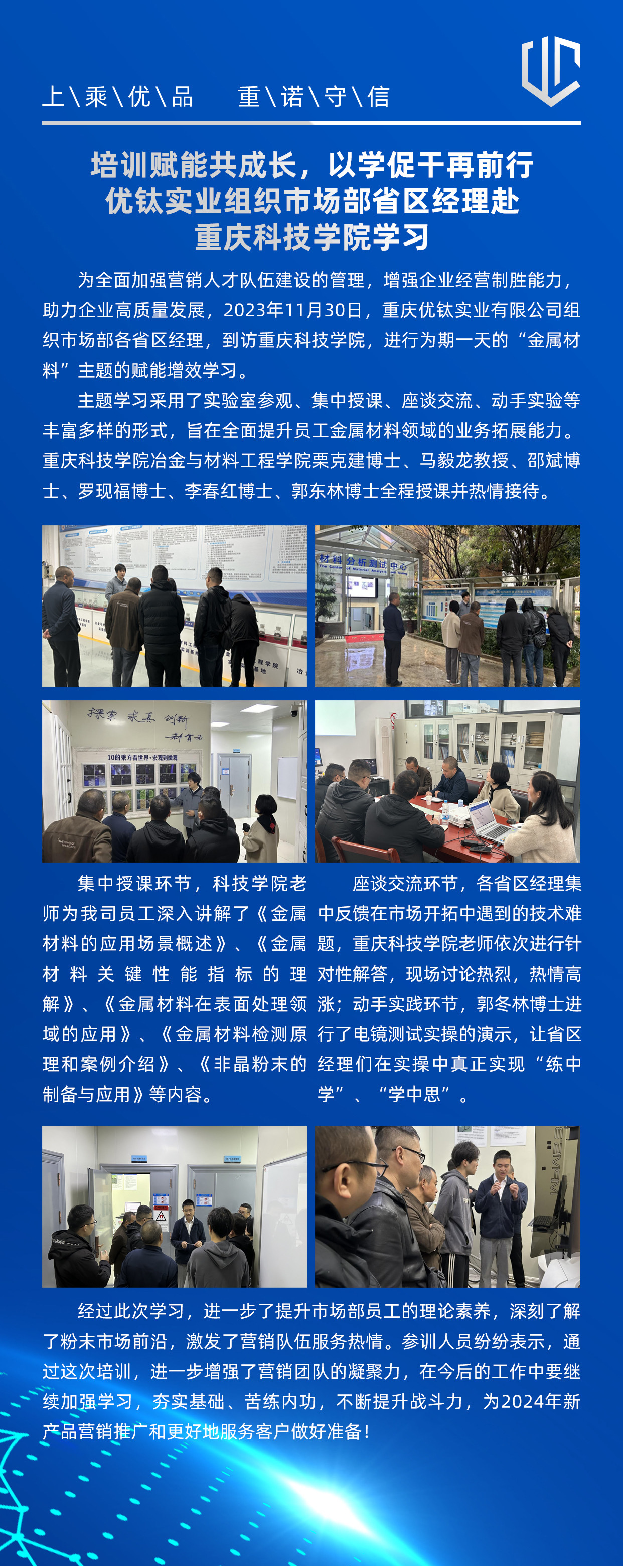 培訓賦能共成長,以學促干再前行——優(yōu)鈦實業(yè)組織市場部省區(qū)經(jīng)理赴重慶科技學院學習