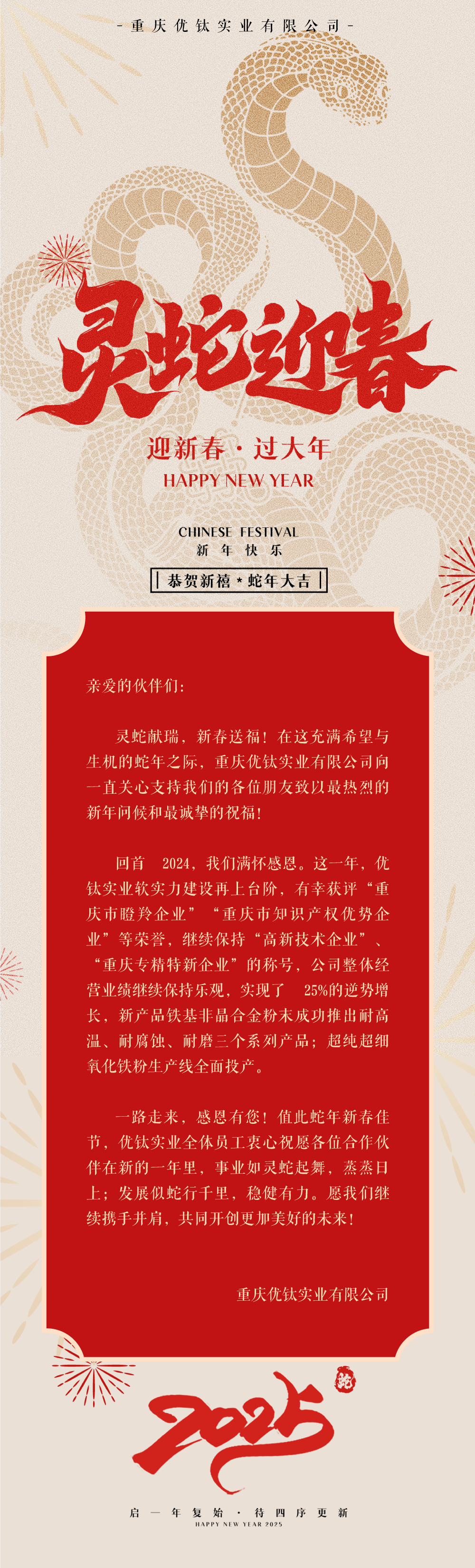 優(yōu)鈦實業(yè)恭祝全體伙伴新春快樂、蛇年大吉