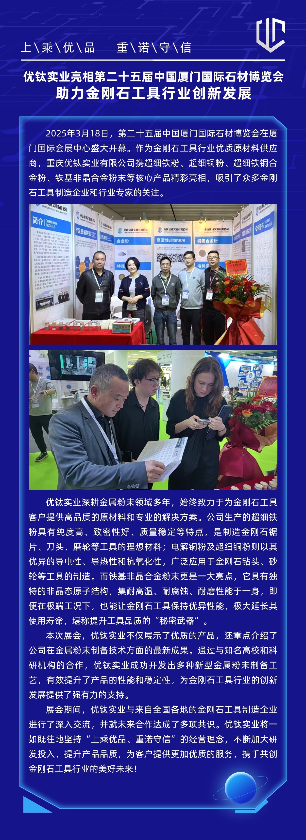 優(yōu)鈦實業(yè)亮相第二十五屆中國廈門國際石材博覽會 助力金剛石工具行業(yè)創(chuàng)新發(fā)展