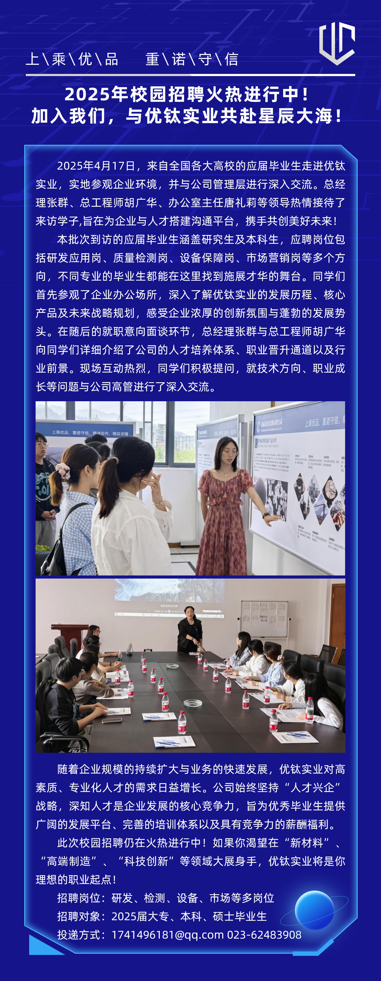 2025年校園招聘火熱進(jìn)行中! 加入我們,與優(yōu)鈦實業(yè)共赴星辰大海!